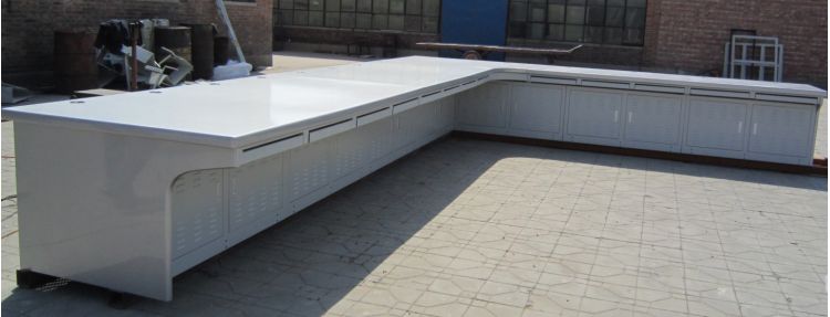 4、 样式及配置:此操作台为直形拐角操作台,适合多联数;内部配置可调隔板一层,本系产品为豪华型包木结构,两侧部 分,台面前端,台面后端为木质;