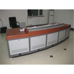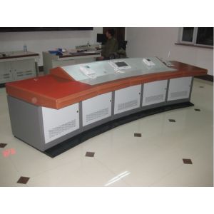 4、 样式及配置:此型号操作台为豪华弧形操作台,台面侧后部带有的凹槽,用于安装液晶显示器;内部配置可调隔板一层,本系产品为豪华型包木结构,两侧部分,台面