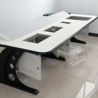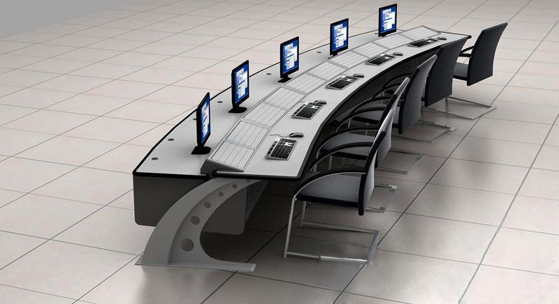 控制台框架:主干架构使用1.5mm厚冷轧钢板钣金焊接加工。坚固耐用,外表面使用静电吸塑工艺,表面附着黑色磨砂纹理,整体结构稳固防腐,不接受主干架构为铝型材框架制作。框架结构支持电缆集中管理槽及显示器架等配件。